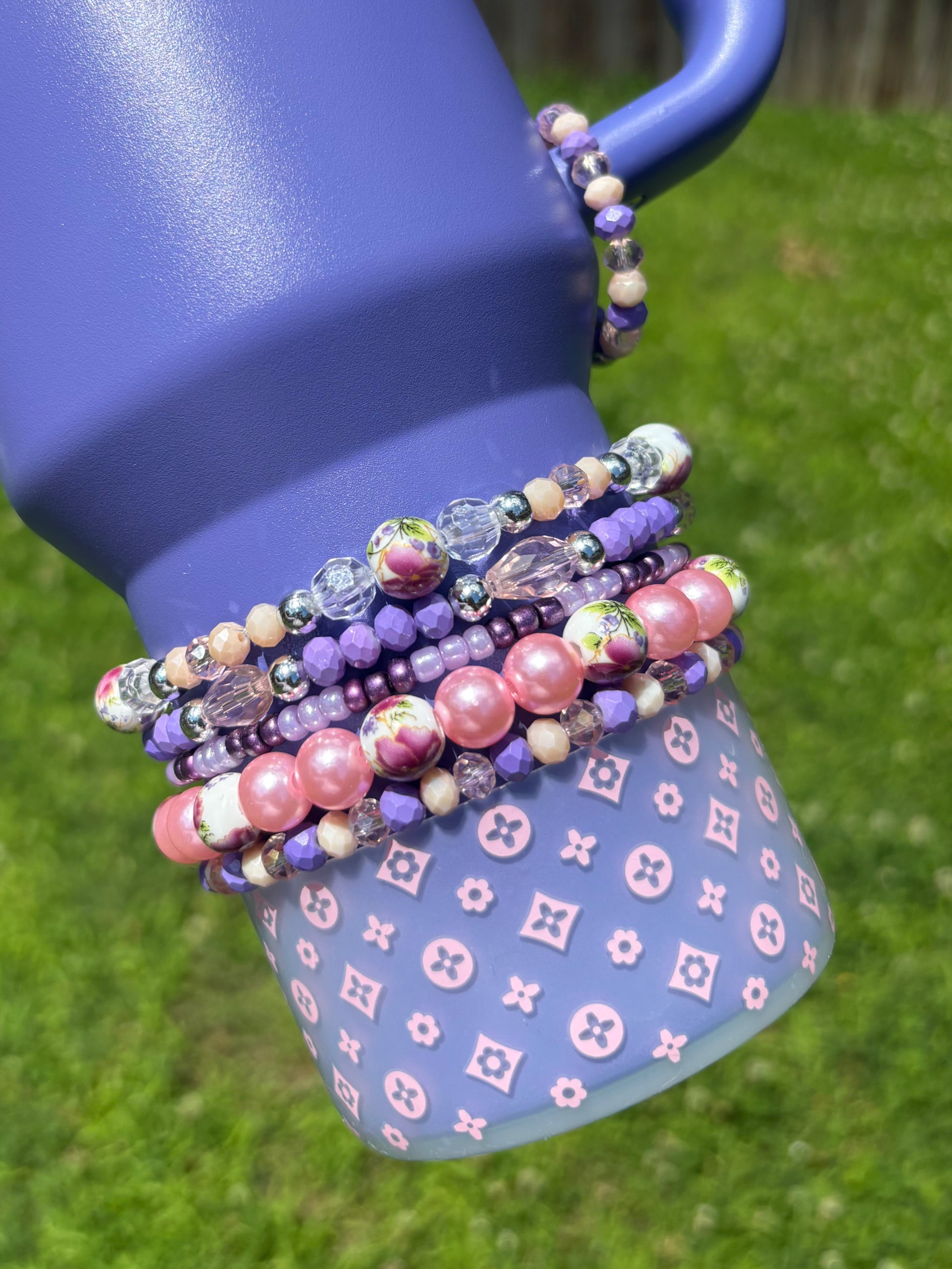 *Bottom bracelets comes with a stack of 5 bracelets. Fits 24oz Owala, 30 & 40oz Stanely’s & 32 oz Hydrojug. Message me OR leave a note at checkout for other for any other sizing needs such as “42oz HJ”.