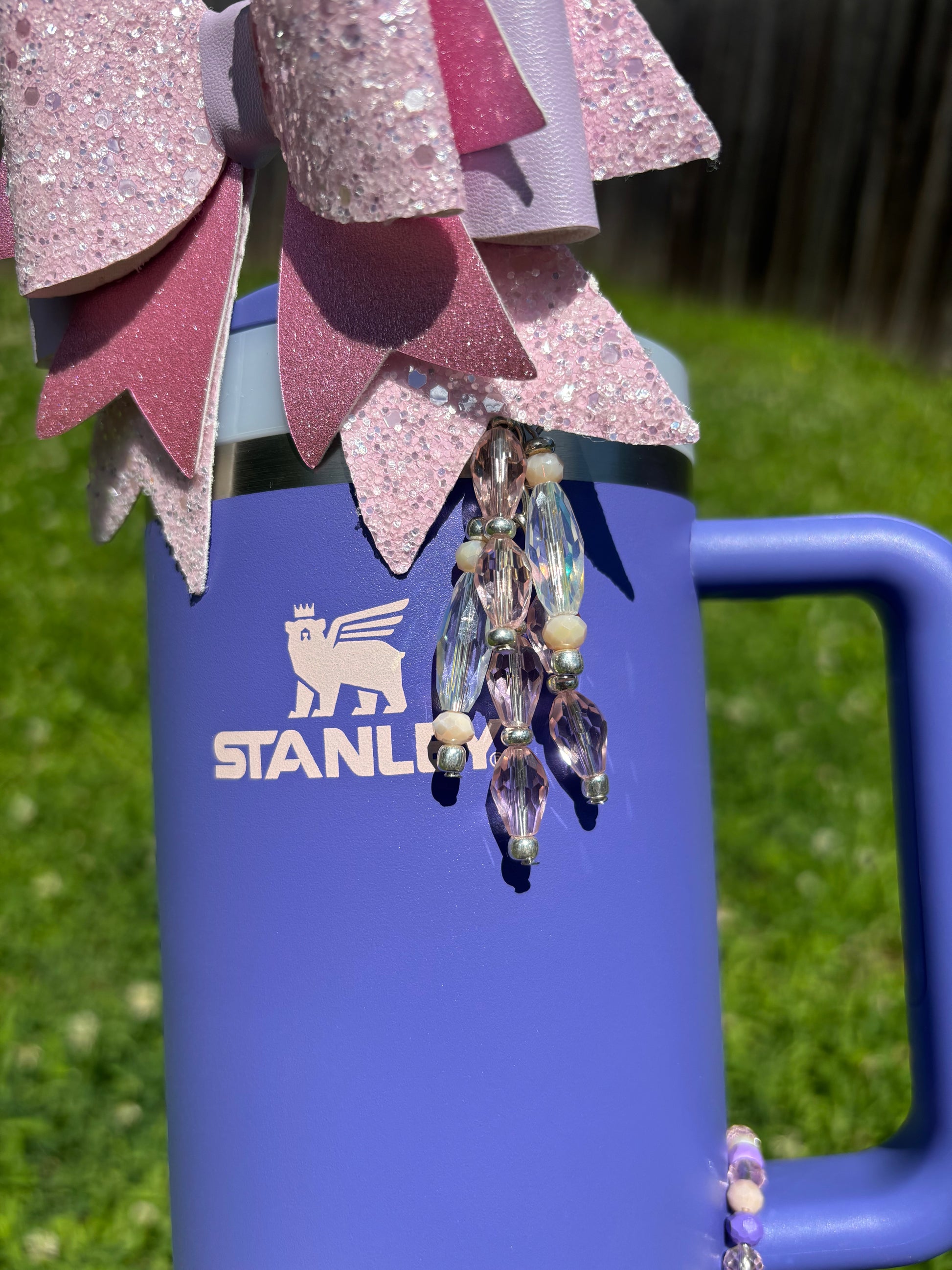 *Straw Dangle has acrylic attachment that slides down over straw which stays down and in place with a straw topper bow over the top. Fits 10mm straw