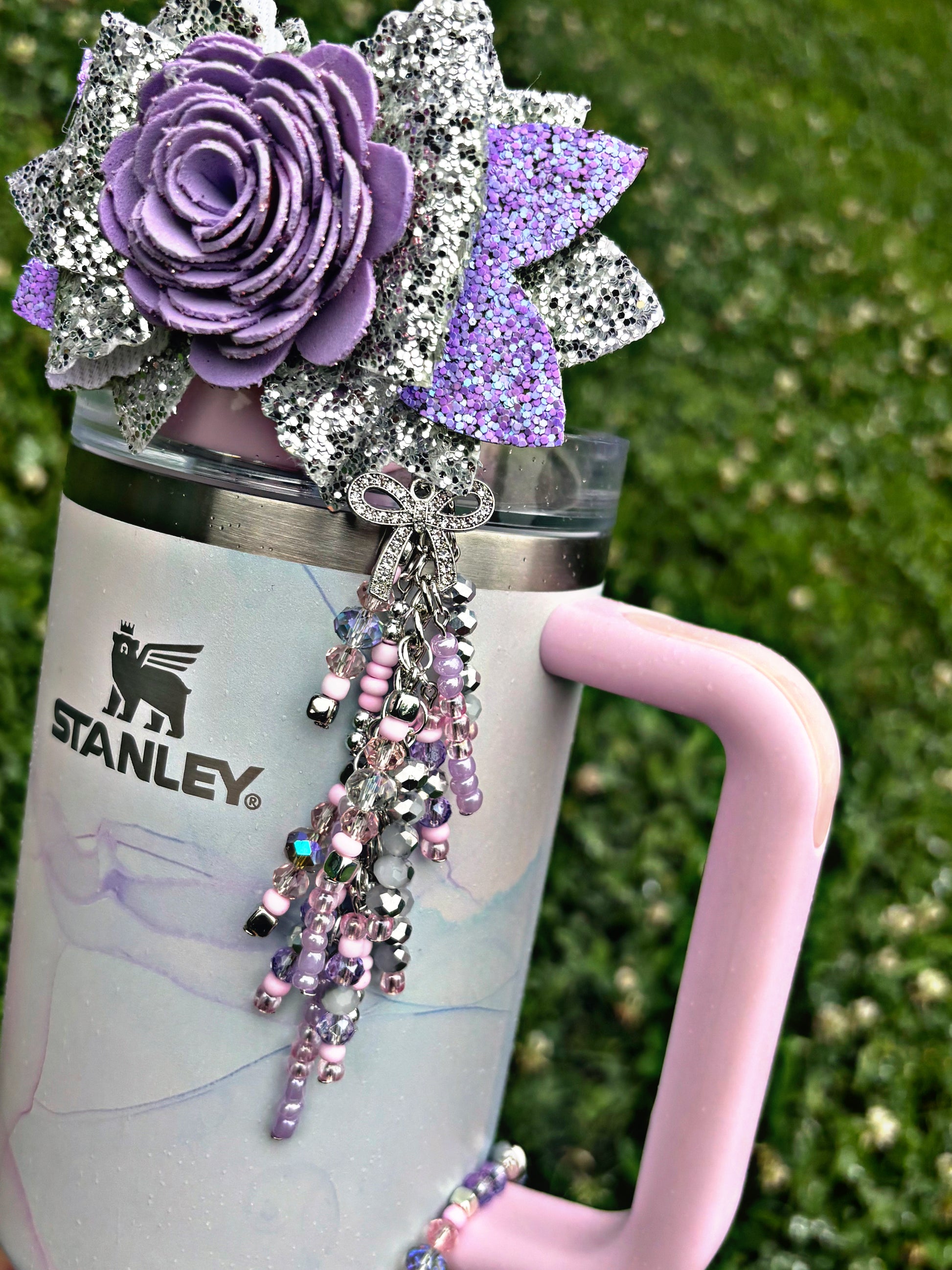 *Straw Dangle has acrylic attachment that slides down over straw which stays down and in place with a straw topper bow over the top. Fits 10mm straw