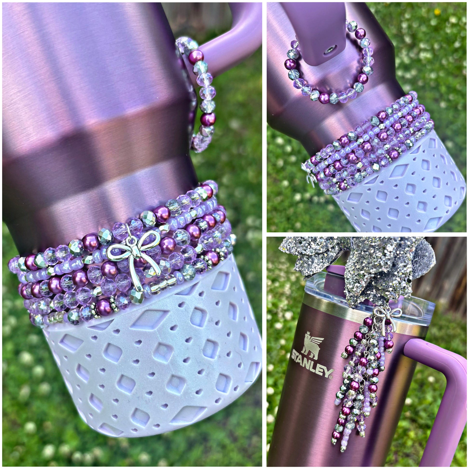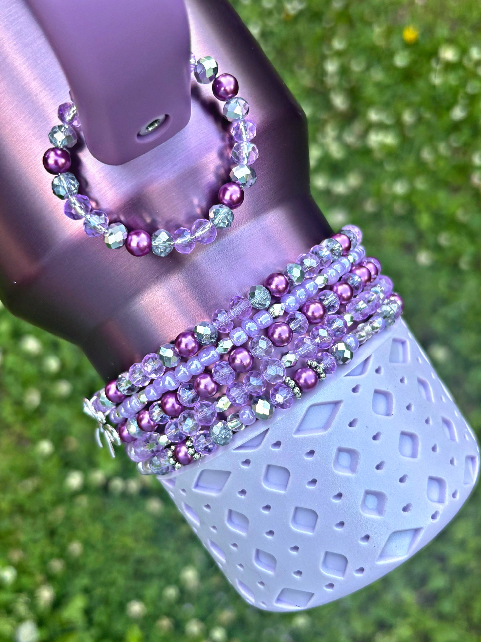 *Bottom bracelets comes with a stack of 3 OR 5 bracelets. Fits 24oz Owala, 30 & 40oz Stanely’s & 32 oz Hydrojug. Message me OR leave a note at checkout for other for any other sizing needs such as “42oz HJ”.
