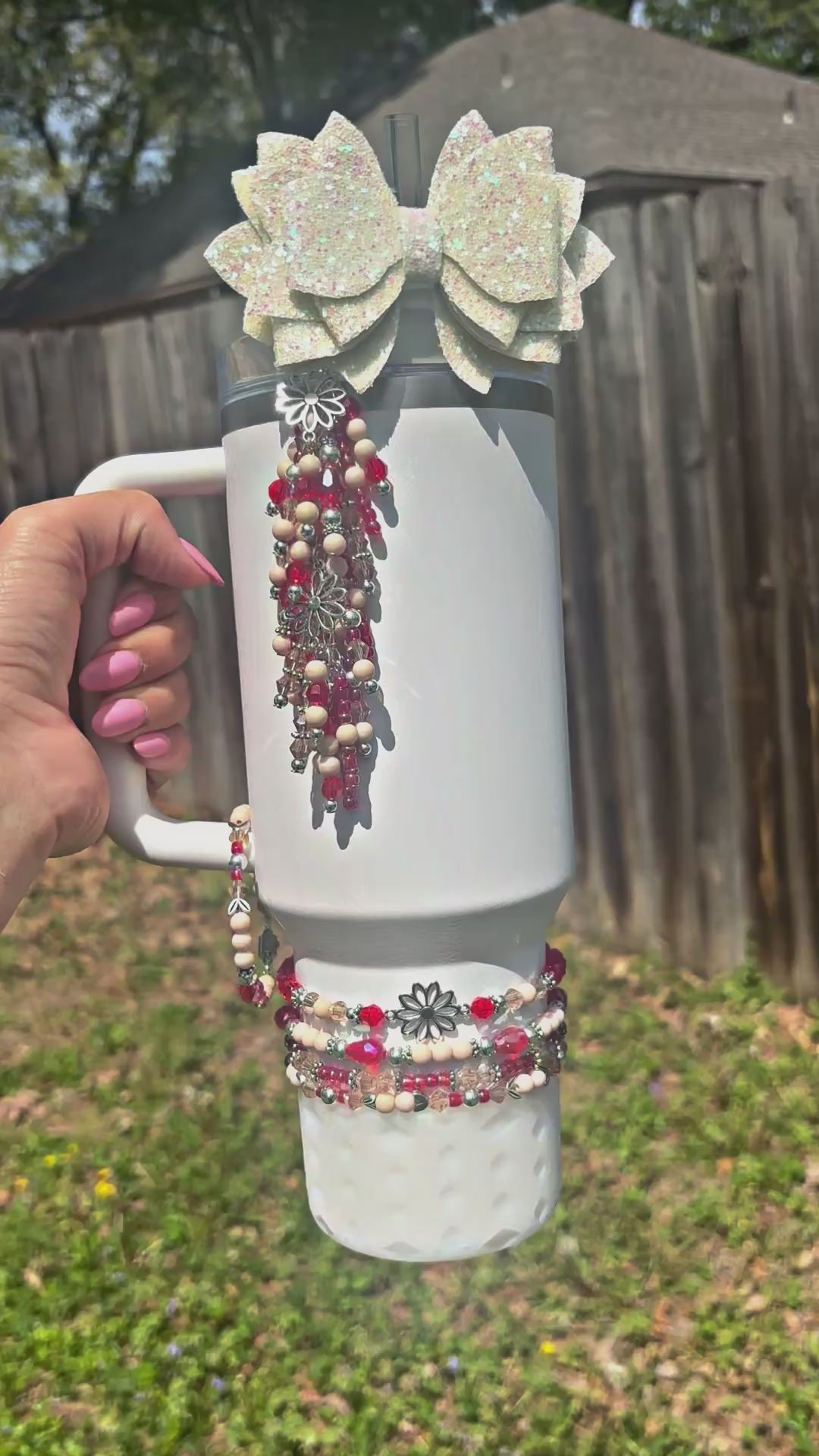 *Straw Dangle has acrylic attachment that slides down over straw which stays down and in place best with a straw topper bow over the top. Fits 8-10mm straw.