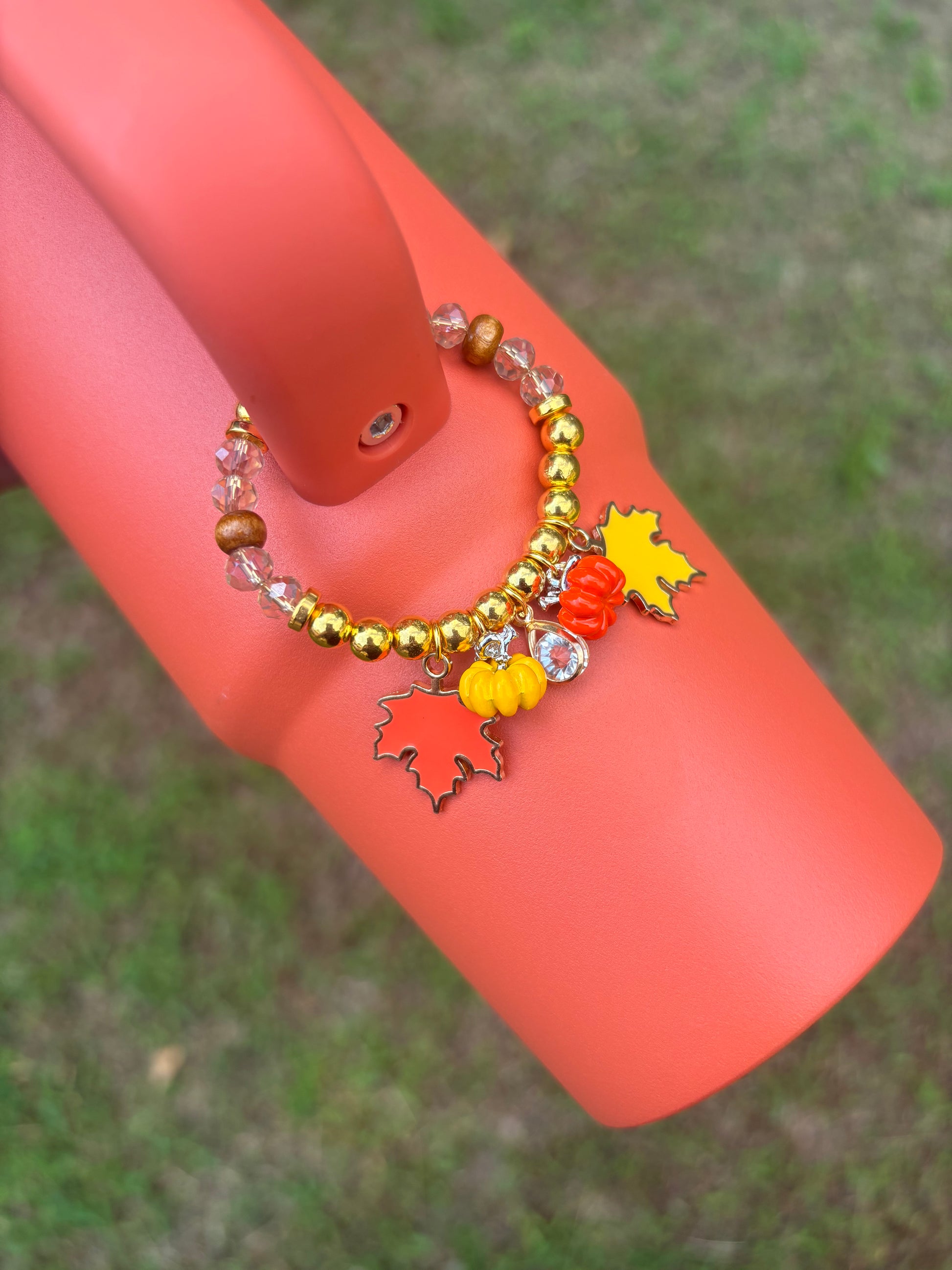 Bracelet à breloques avec anse en forme de tasse et feuille d'épices à la citrouille