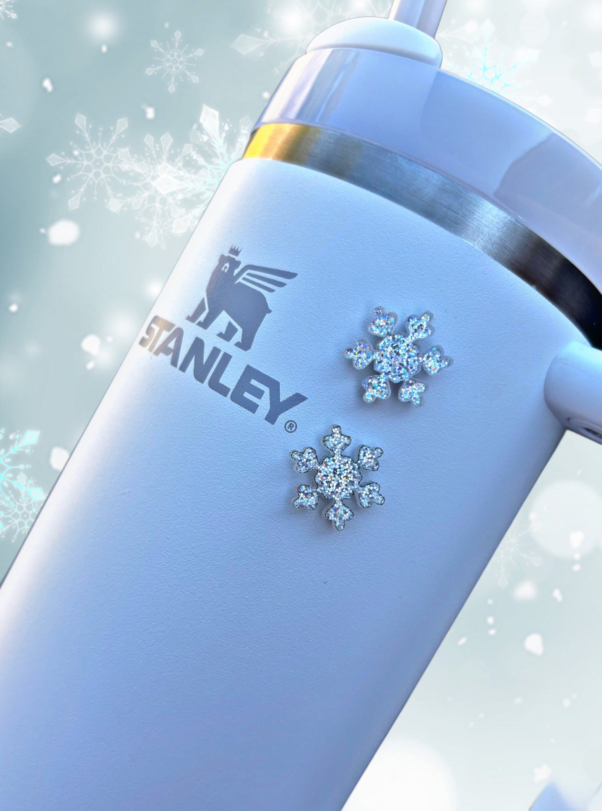 Lot de 2 aimants à paillettes en forme de flocon de neige en acrylique