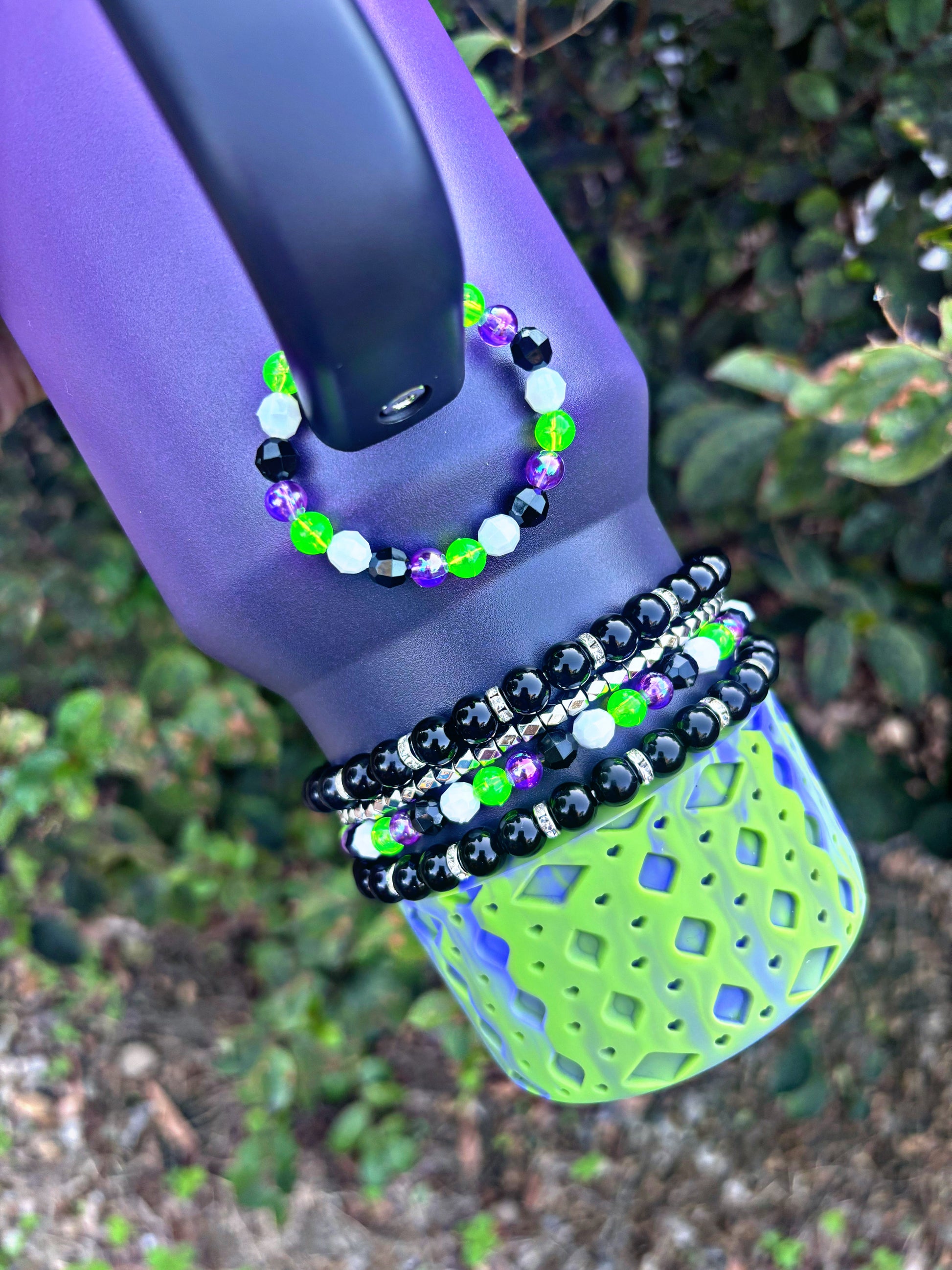 Can also go around some bag and purse handles. Made with flexible wire and magnetic closure for easy attaching and removing.