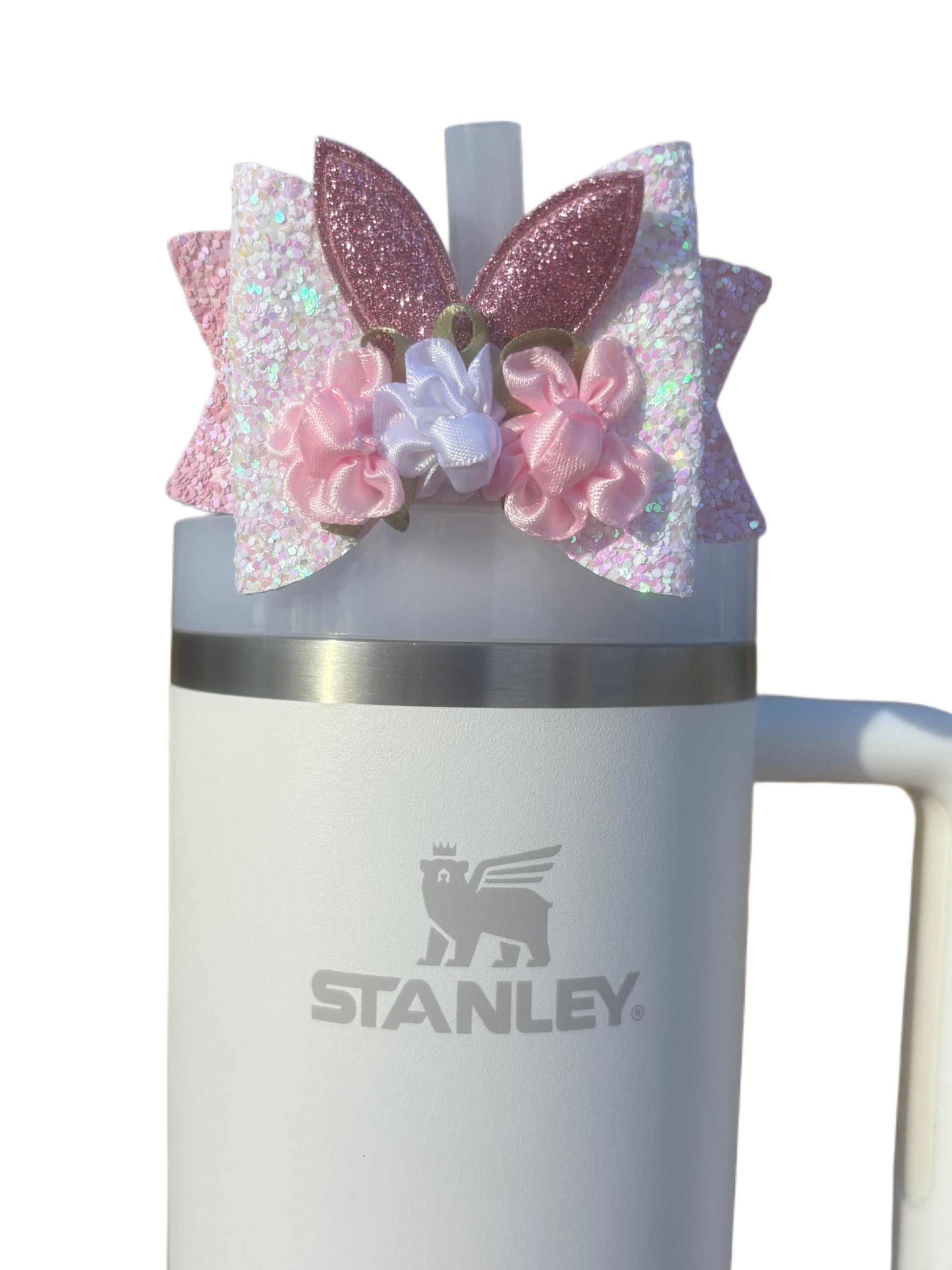 Designed with elastic band on backing of bow to fit straw sizes 8-10mm. Bow size 3in x 2.5 in.