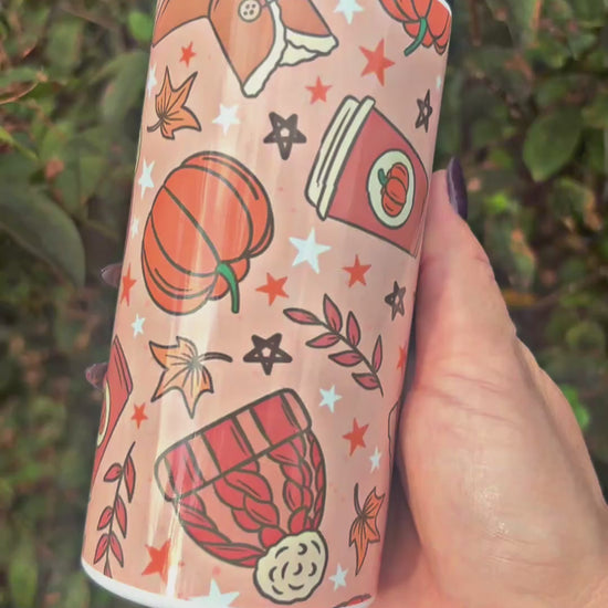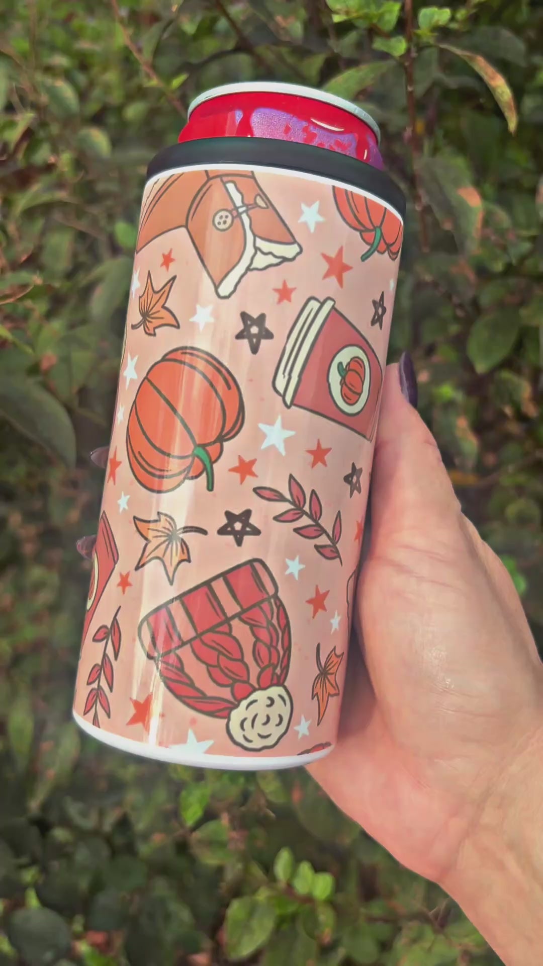Stainless steel insulated. Fits 12 oz slim cans. Tumblers are handmade and may show minor imperfections. Hand wash only.