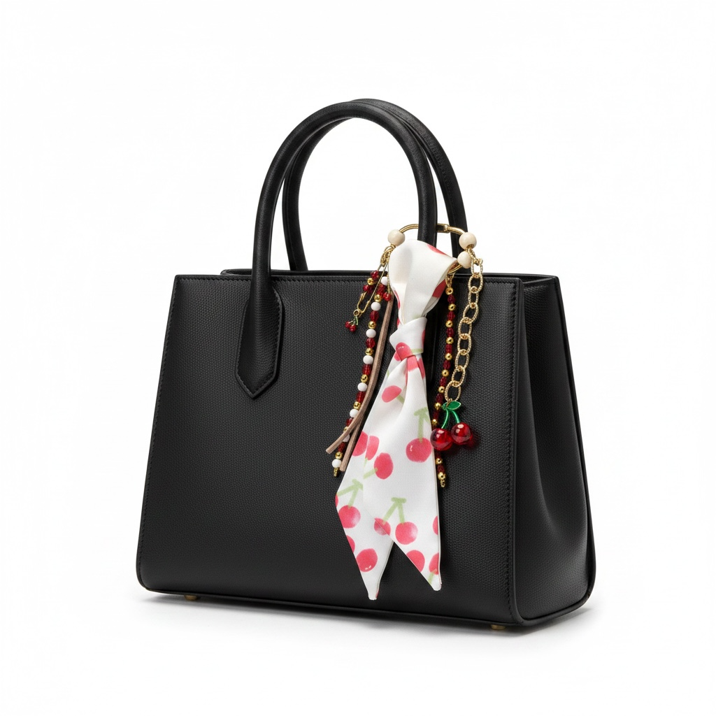 Charm is attached to a carabiner clip to easily add onto your bag or purse strap. Clip it anywhere. Pattern and beading placement may slighty vary.