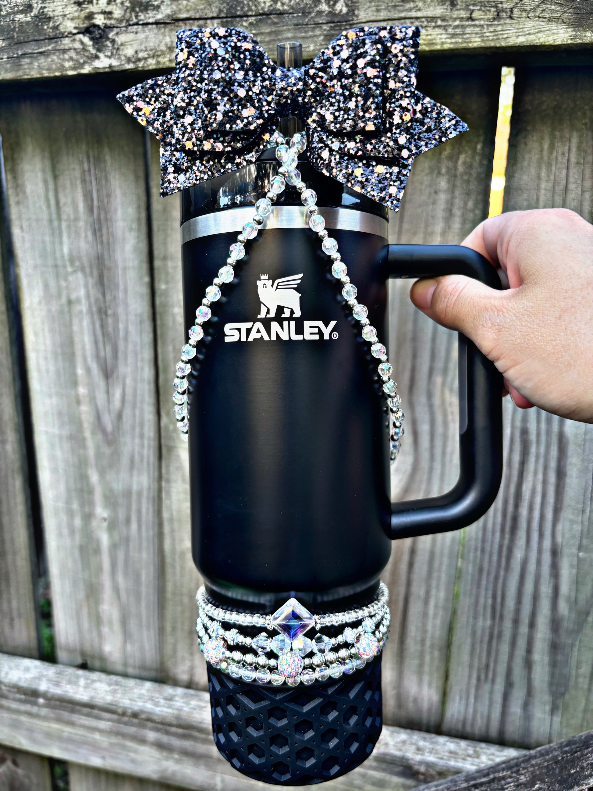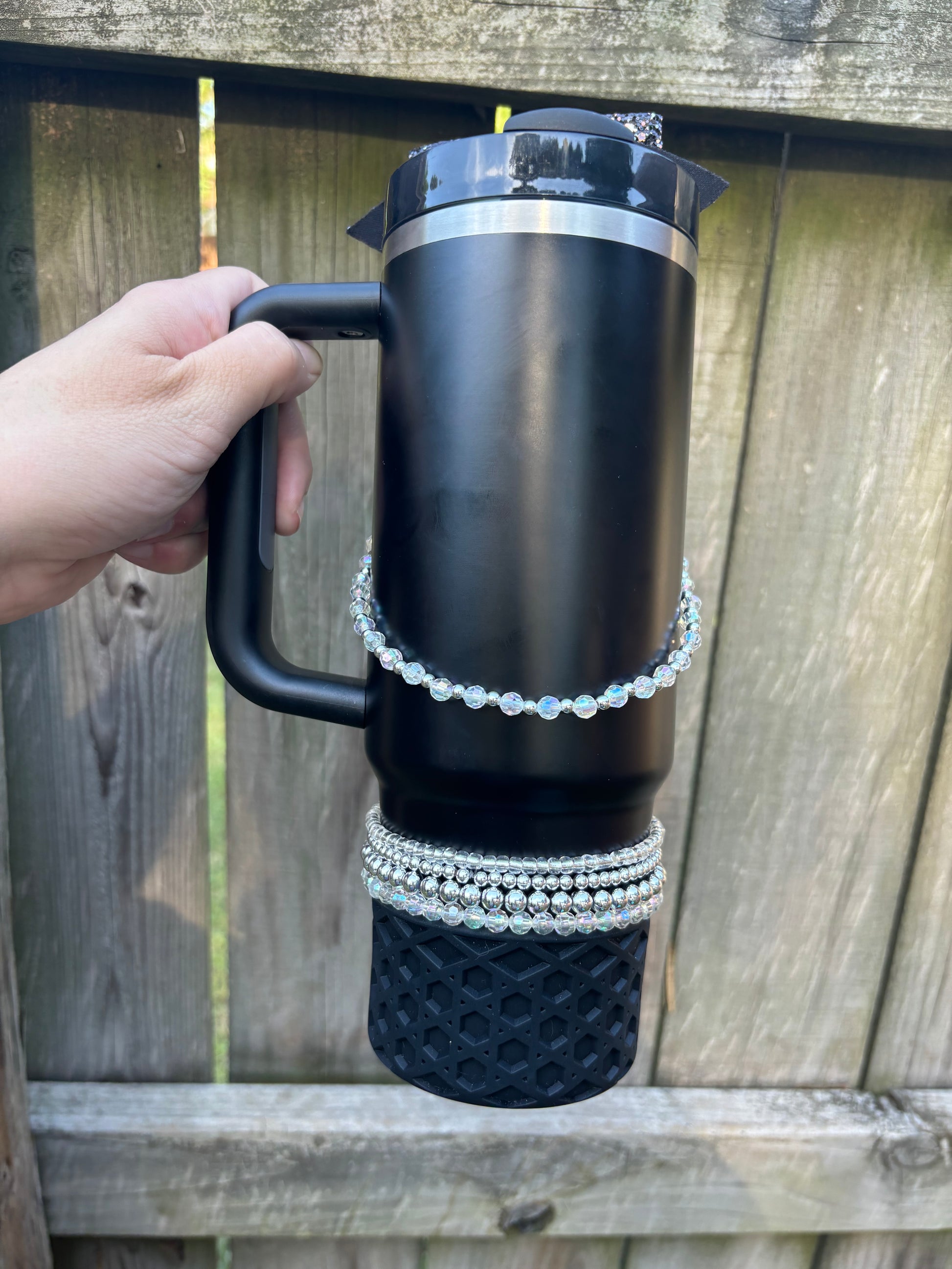 Listing is for one cup necklace for your tumbler. Bottom bracelets sold separately. Designed to loop around your straw with a loop and clasp for easy attaching and Removal.