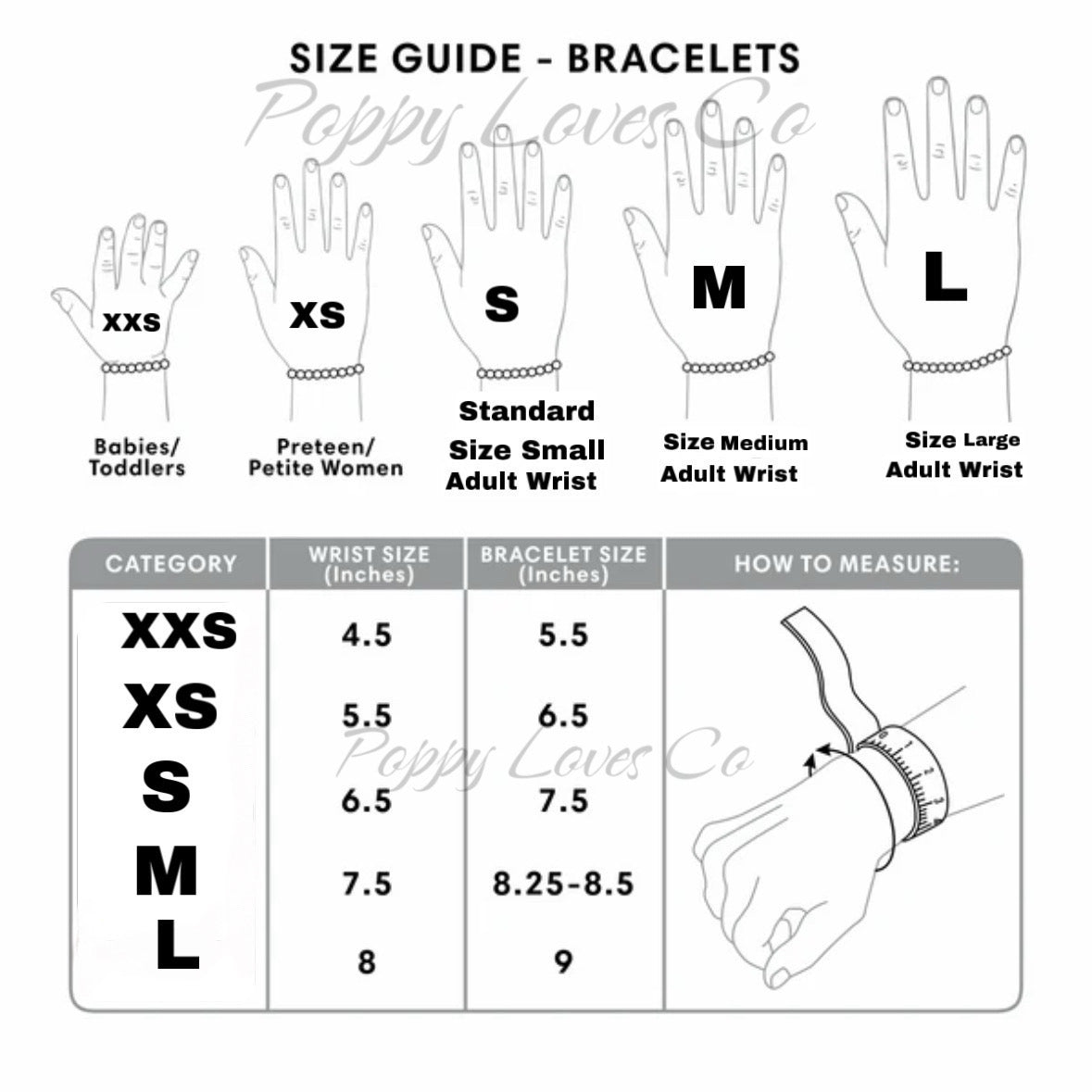 *Magnetic Bracelet Sizing: See size chart at the end of photos on this listing. Measure your wrist prior to ordering. Note: Models wrist is a size 6.5in and wears a size Small (standard adult size).