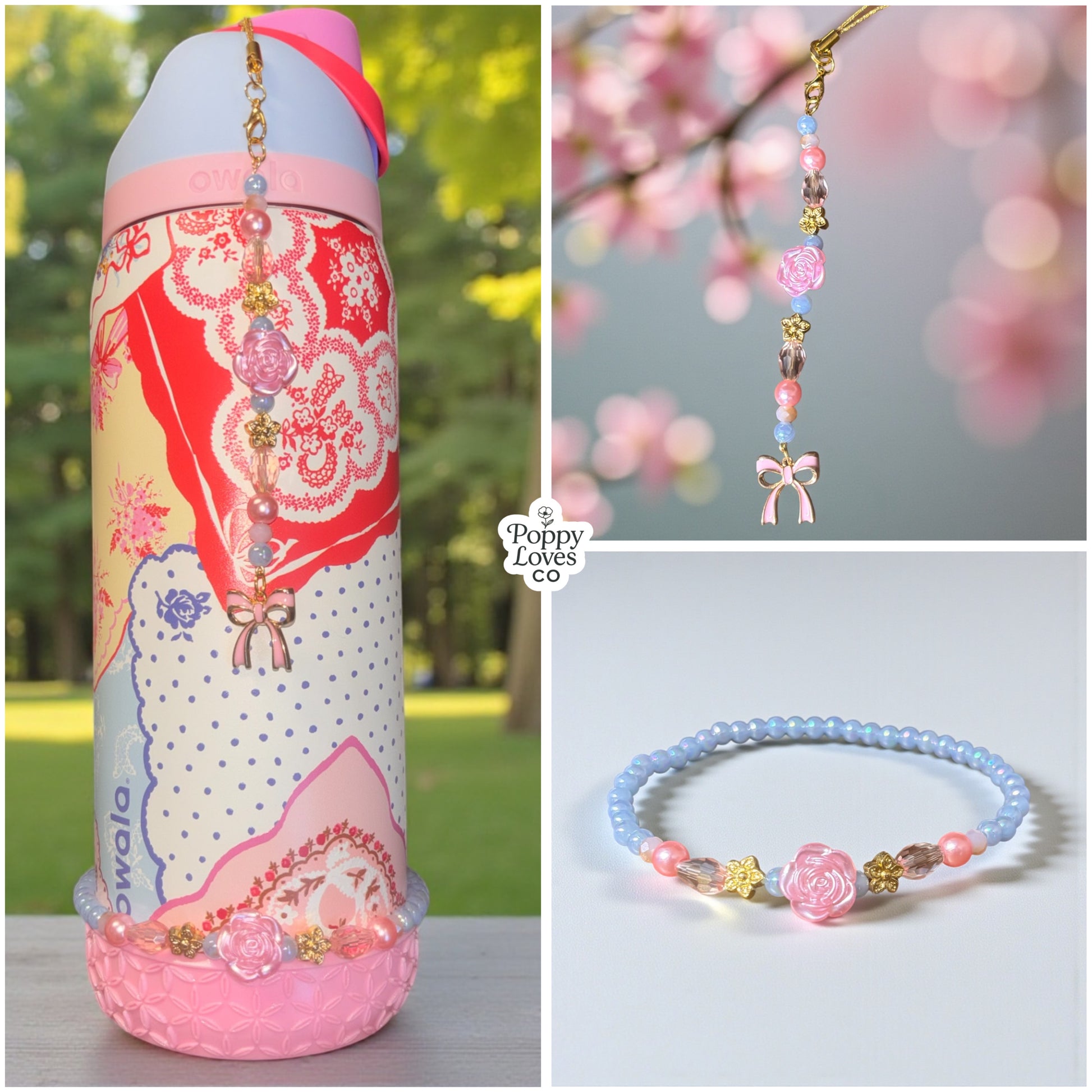 *Bottom bracelet-each sold separately. Standard Fits 24oz Owala, 30 & 40oz Stanely’s & 32 oz Hydrojug. Message me OR leave a note at checkout for any other sizing needs.