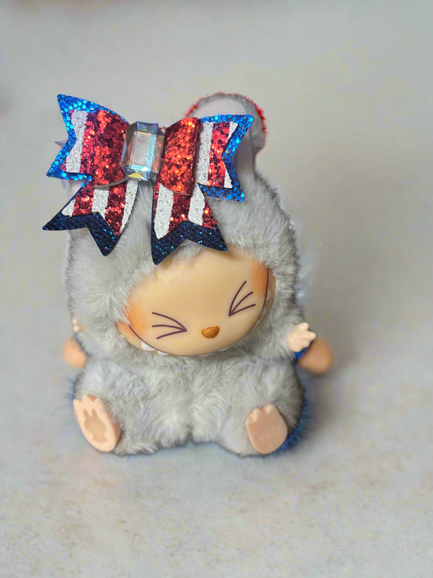 Listing is for one little bow only. Doll is not included. An alligator clip is attached to the back of the bow. The bow can be clipped on the ears or the strap that comes attached to the dolls.