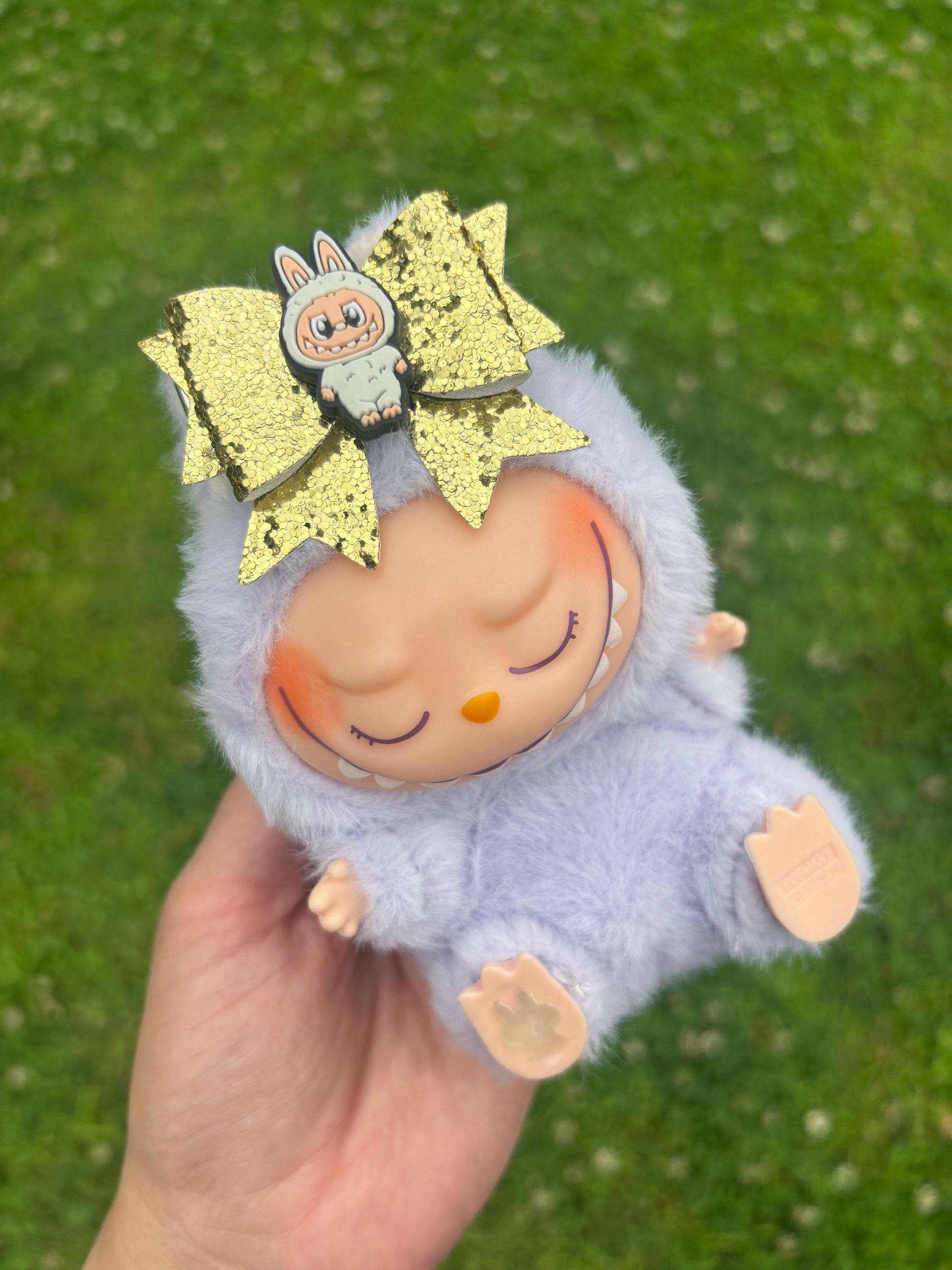 Listing is for one little bow only. Doll is not included. An alligator clip is attached to the back of the bow. The bow can be clipped on the ears or the strap that comes attached to the dolls.