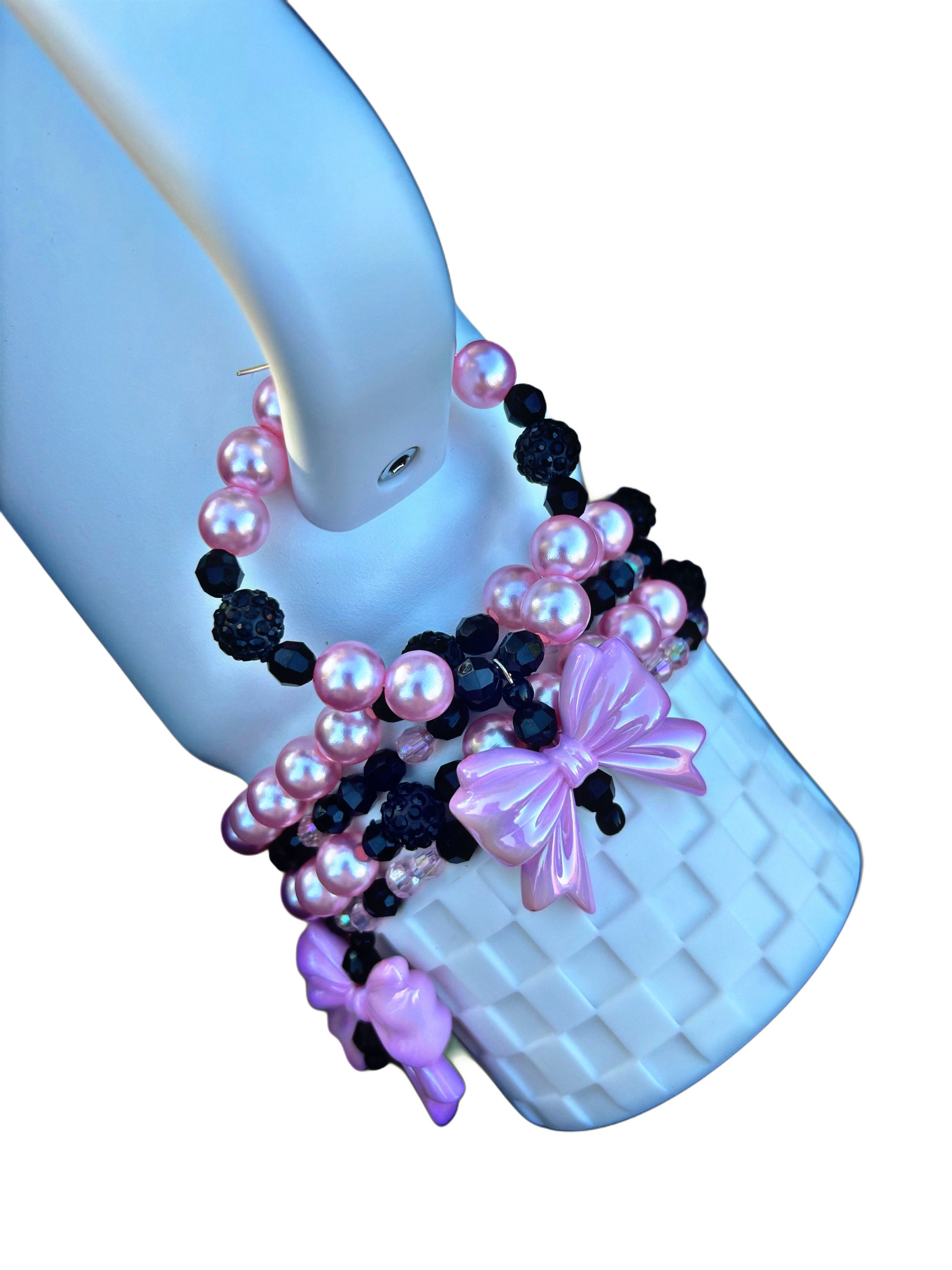 Can also go around some bag and purse handles. Made with flexible wire with hook and loop for easy attaching and removing.