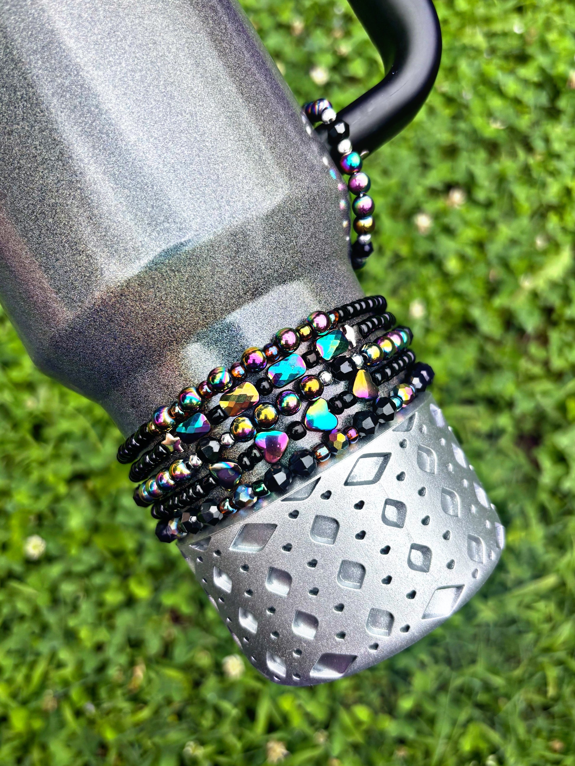 *Bottom bracelets comes with a stack of 5 bracelets. Fits 24oz Owala, 30 & 40oz Stanely’s & 32 oz Hydrojug. Message me OR leave a note at checkout for other for any other sizing needs such as “42oz HJ”.