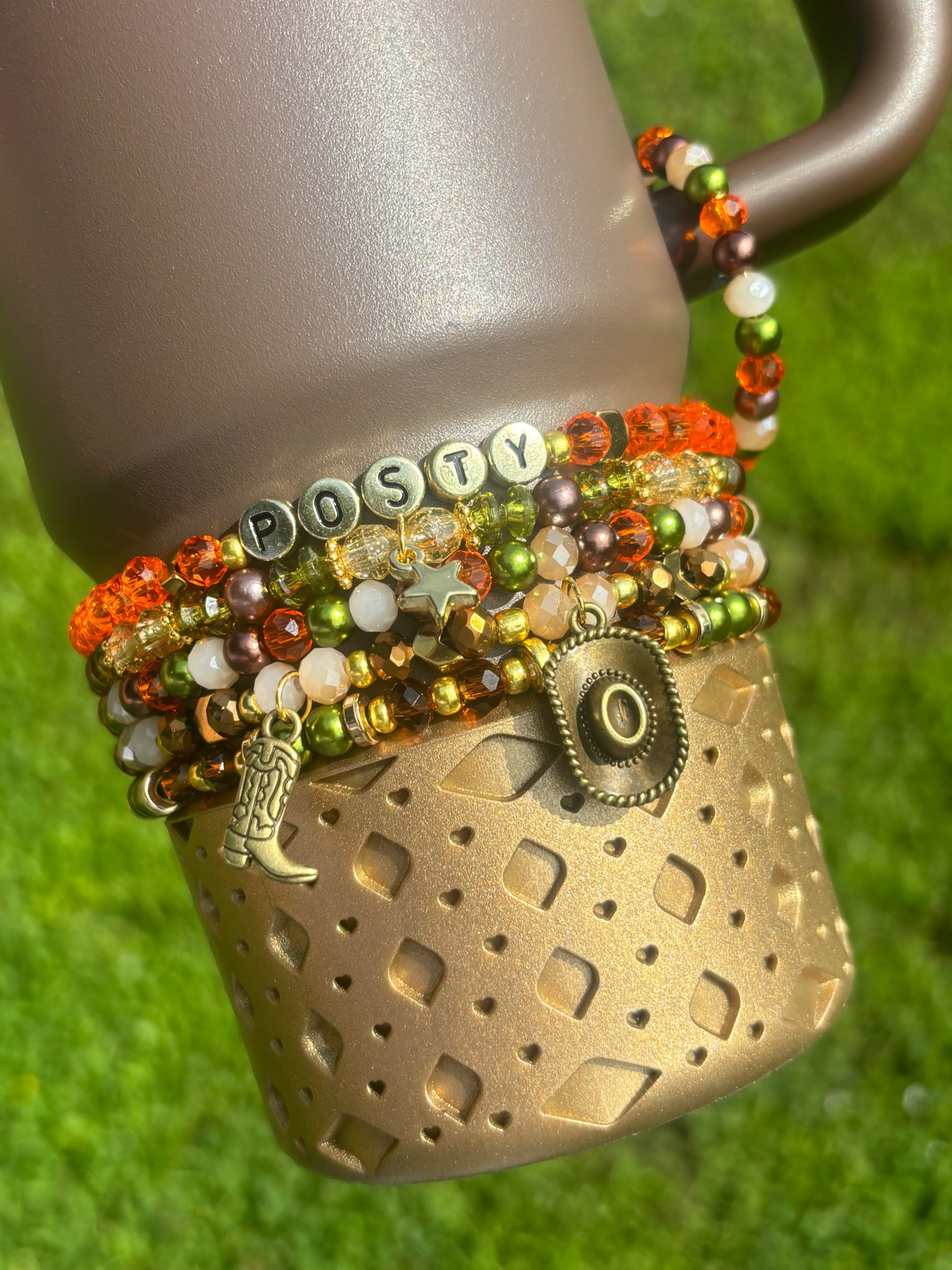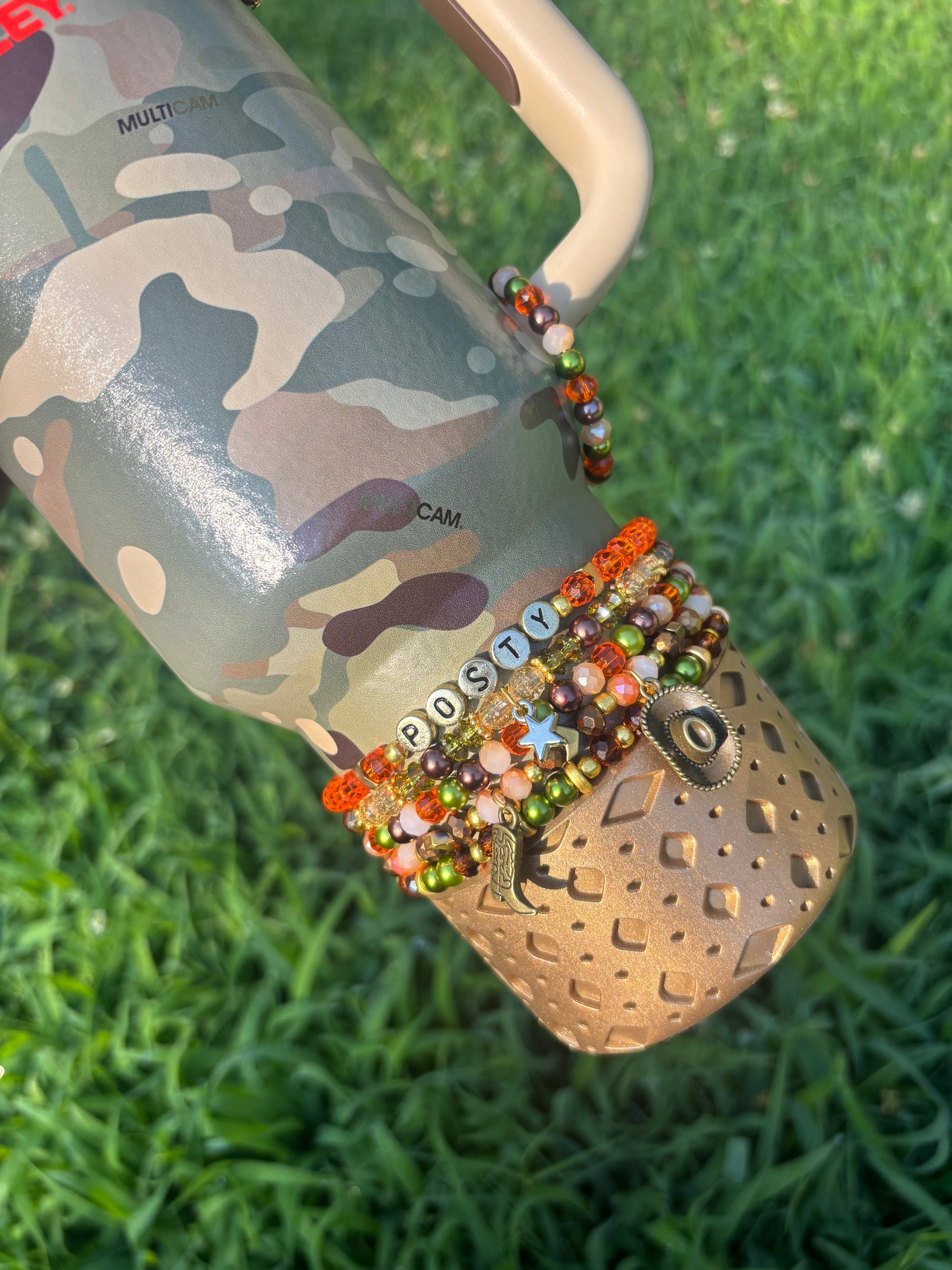 *Bottom bracelets CHOOSE: single top row, stack of 4 or 5 bracelets. Fits 24oz Owala, 30 & 40oz Stanely’s & 32 oz Hydrojug. Message me OR leave a note at checkout for other for any other sizing needs such as “42oz HJ”.