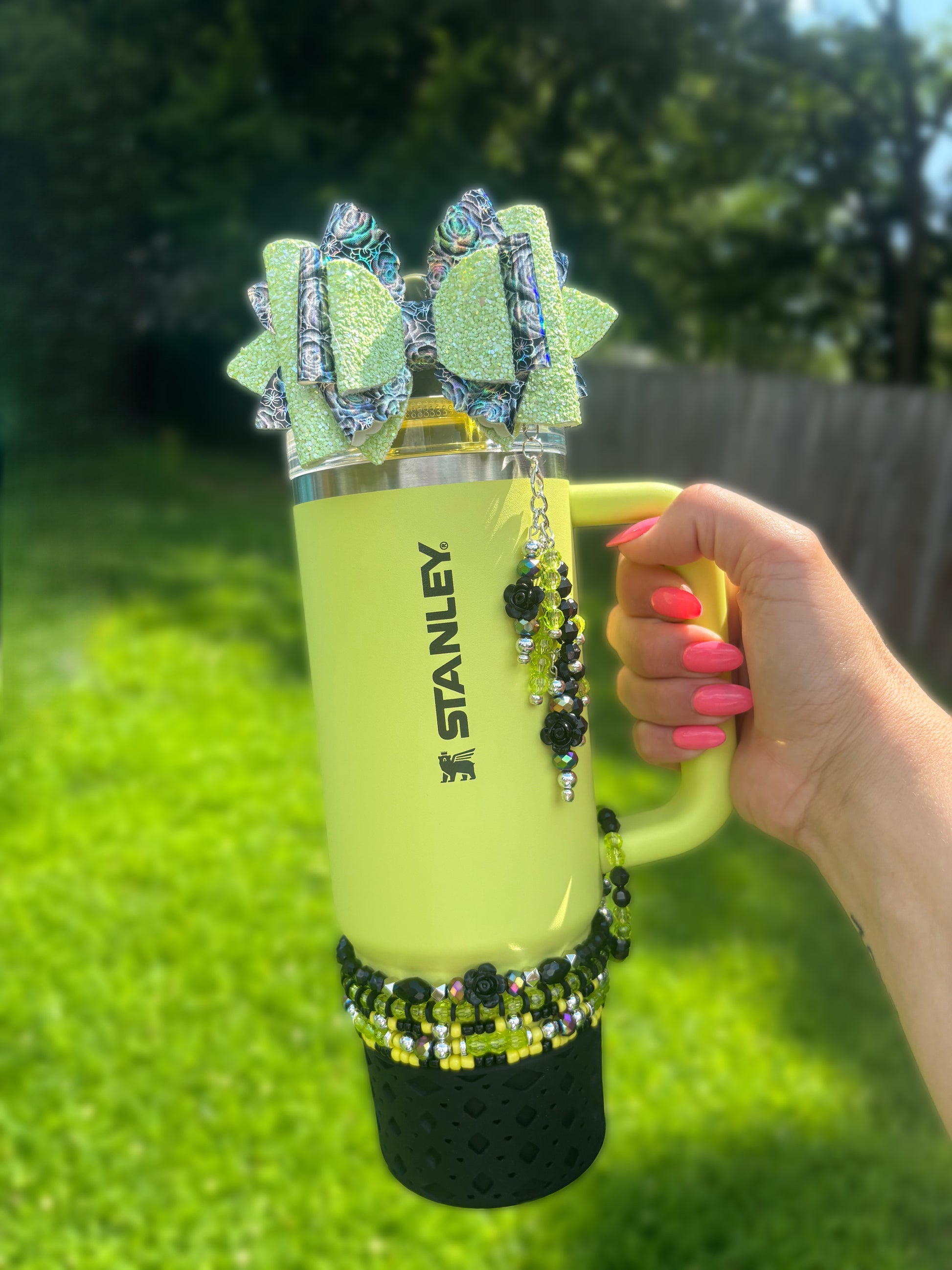 Prickly Pear Bow (Green Glitter with Floral Black Holographic)