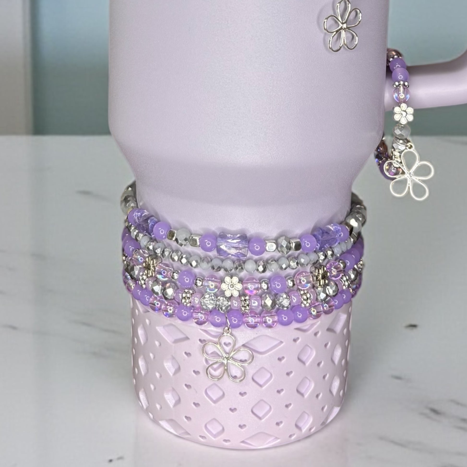 *Bottom Bracelets-Fits 24oz Owala, 30 & 40oz Stanely’s & 32 oz Hydrojug. Message me OR leave a note at checkout for other for any other sizing needs such as “40oz HJ”.