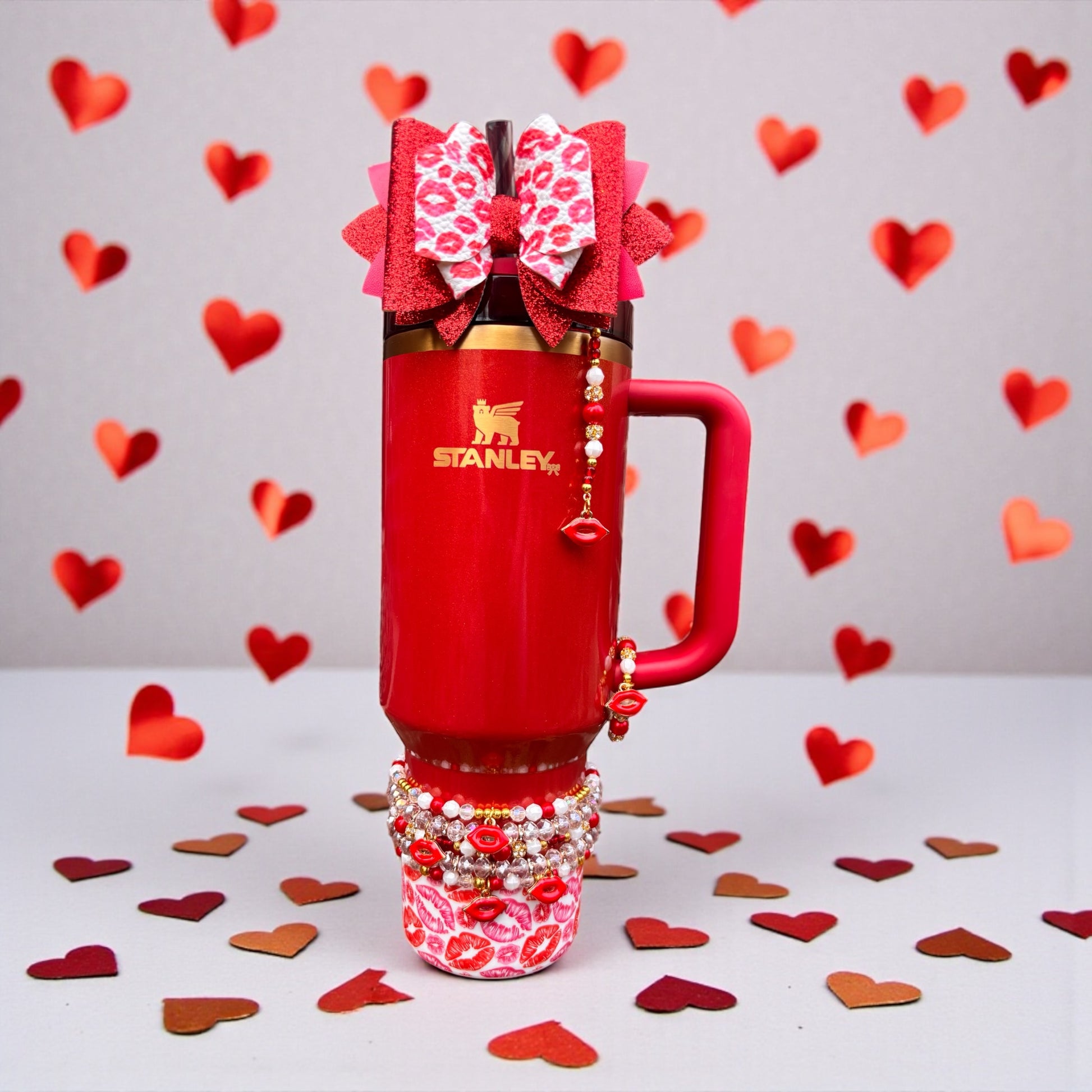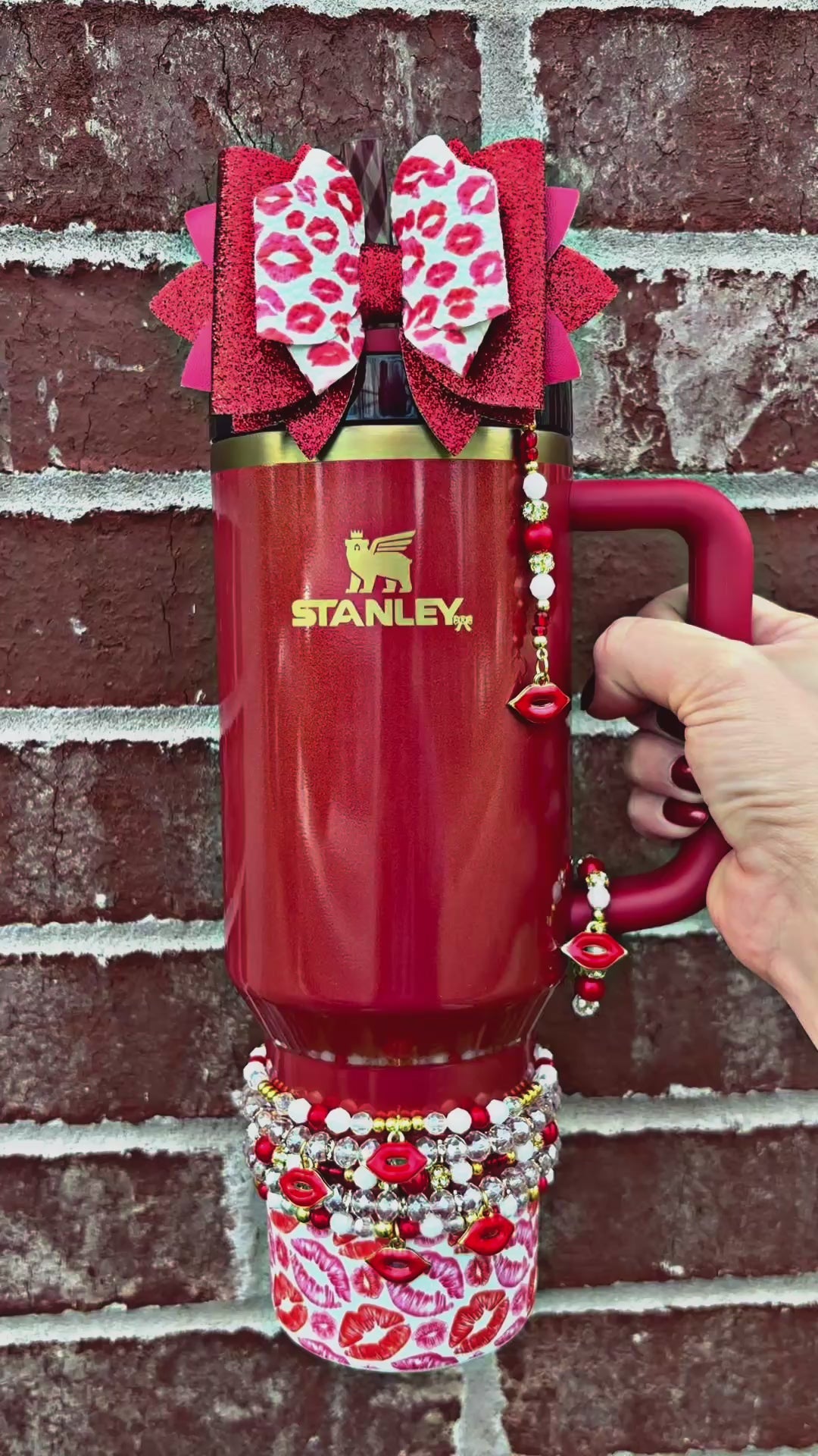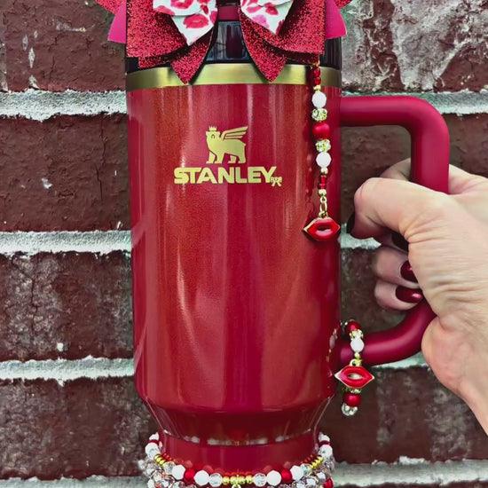 *Straw Dangle has acrylic attachment that slides down over straw which stays down and in place with a straw topper bow over the top. Fits 10mm straw. Spout option has loop to loop around spout.