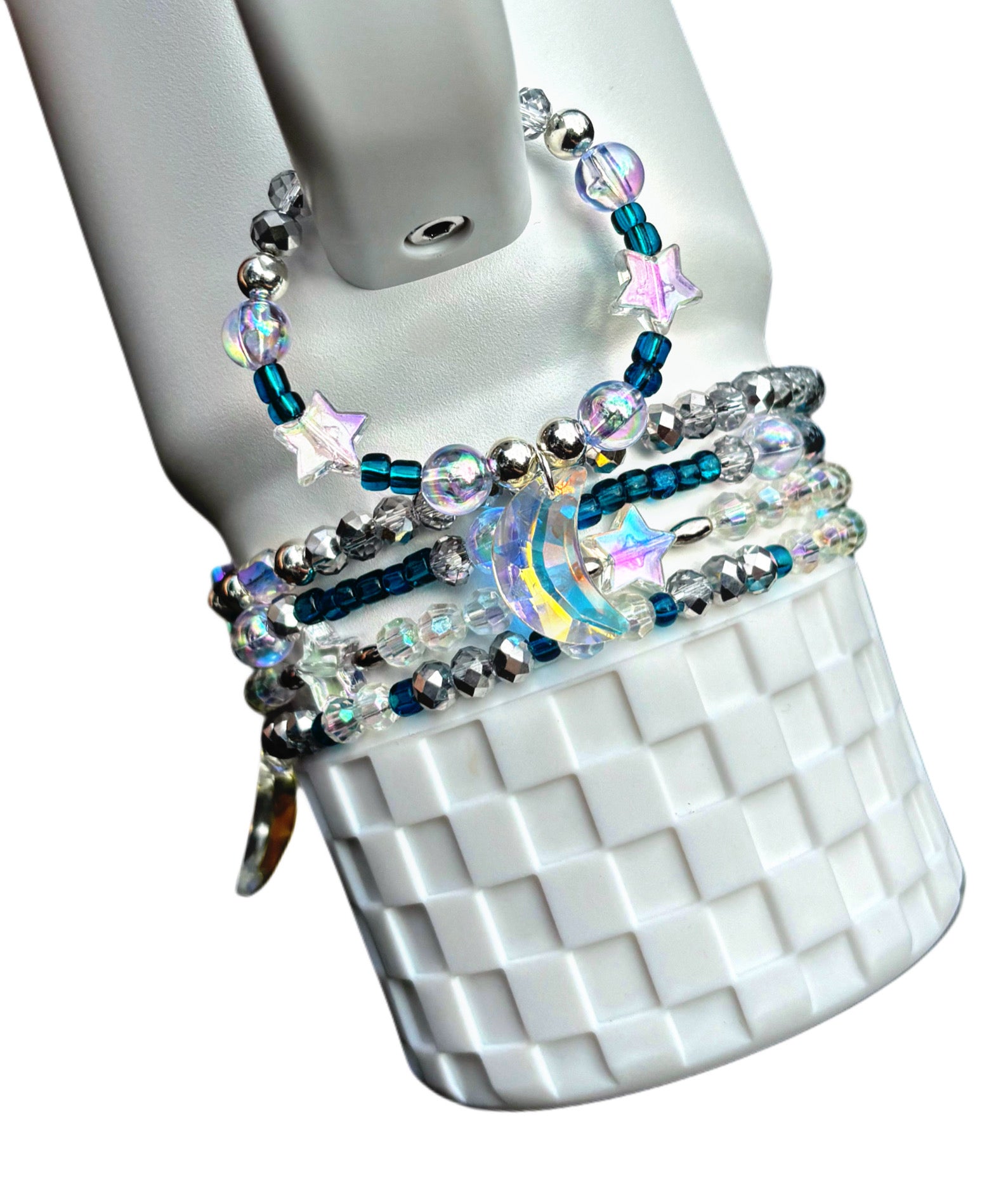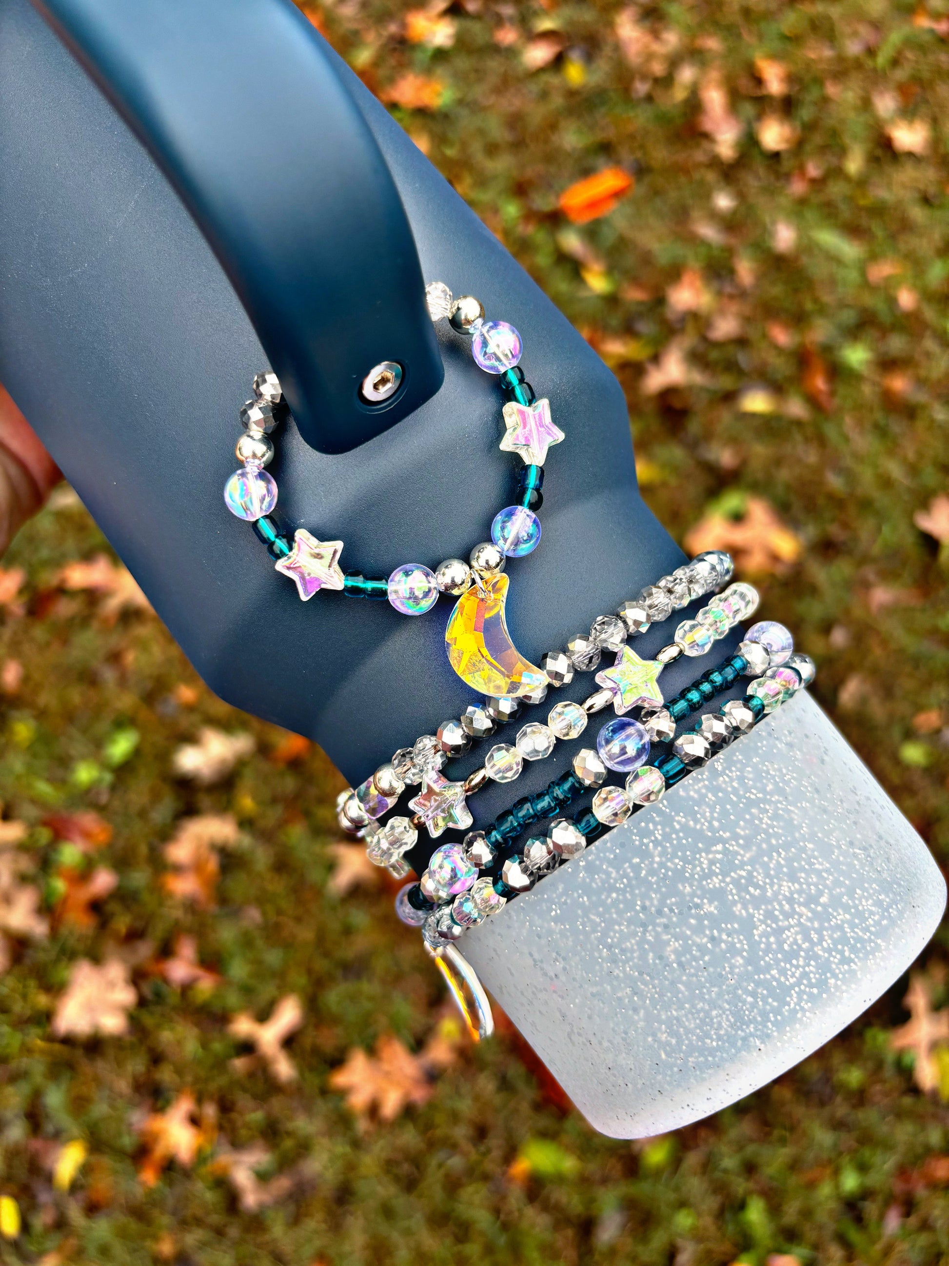 Can also go around some bag and purse handles. Made with flexible wire with hook and loop for easy attaching and removing.